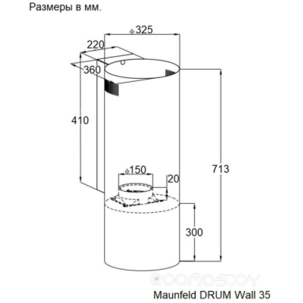 Описание Вытяжка Maunfeld DRUM Wall 35 белый
